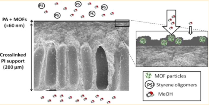 The authors from Imperial College (UK) and Universidad de Zaragoza (Spain) developedMOF-based thin film nanocomposite (TFN) membranes with high solvent permeance and stable rejection, achieving exceptional performance in the application oforganic solvent nanofiltration (OSN).