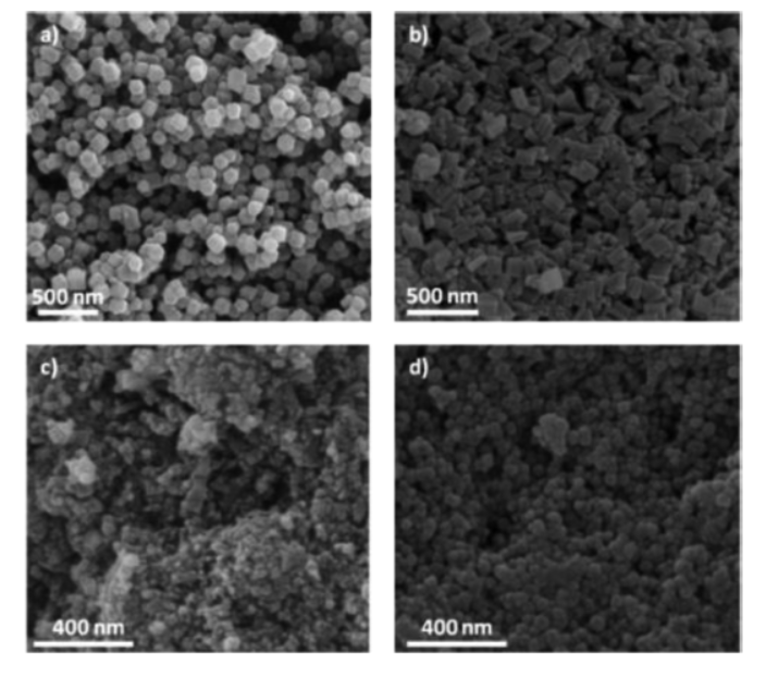 -MOF synthesis: ZIF-8 was prepared via solvothermal reaction of zinc nitrate hexahydrate and 2-methylimidazole in methanol at 150 °C for 5 h; NH₂-MIL-53(Al) and MIL-53(Al) were synthesized by solvothermal treatment of aluminum nitrate nonahydrate with 2-aminoterephthalic acid/terephthalic acid in DMF (130 °C for 3 days, 120 °C for 1 day, respectively); MIL-101(Cr) was synthesized via microwave reaction of chromium chloride hexahydrate and terephthalic acid in water at 180 °C for 30 min.