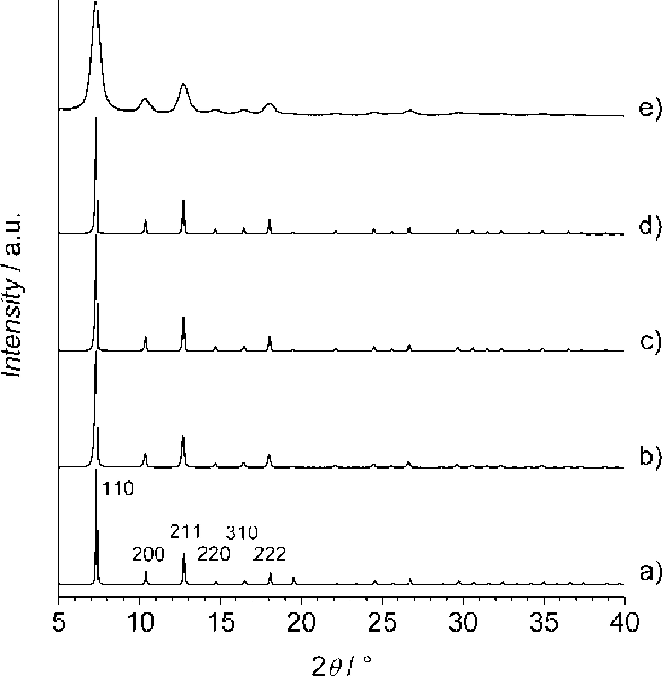 - XRD: All products are pure-phase ZIF-8; variable-temperature XRD shows stability up to 250°C (18 nm nanocrystals) or 300°C (larger crystals/microcrystals).
