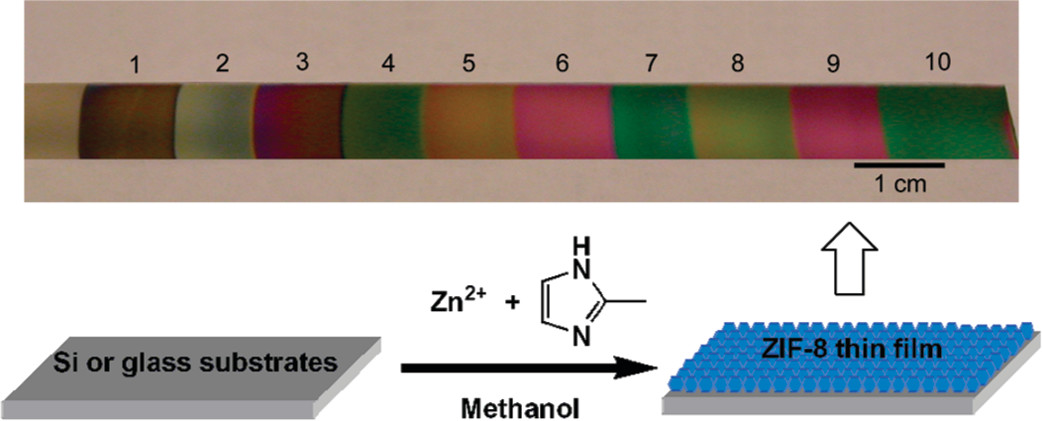 The authors synthesized ZIF-8 thin films using a room-temperature immersion method: