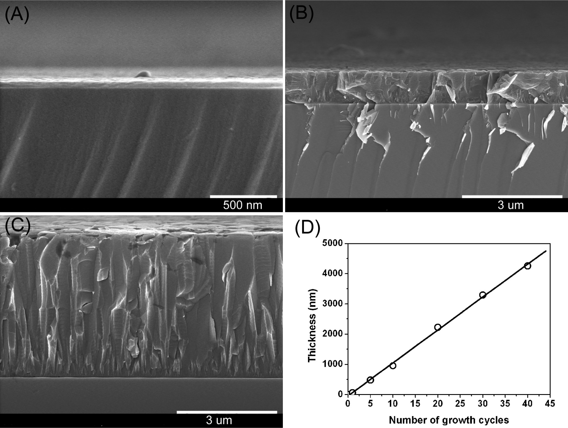 - Thicker films were obtained by repeating the process with fresh solutions (≈50 nm for 1 cycle, ≈100 nm per additional cycle).