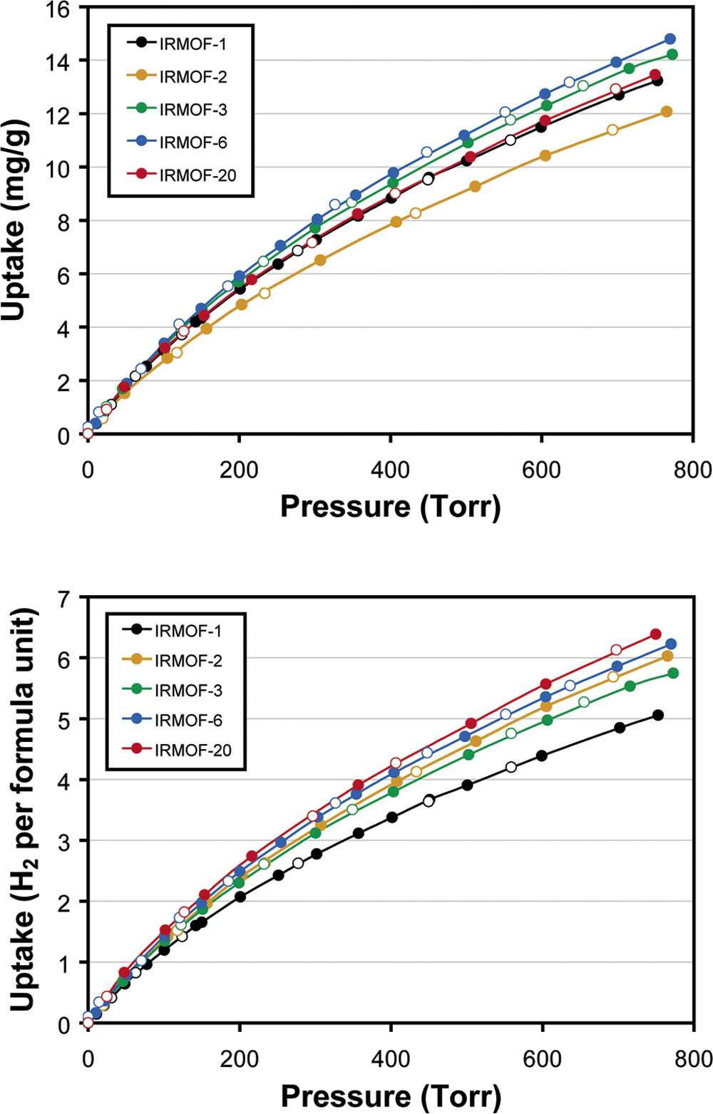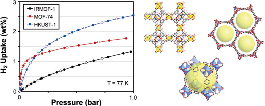 The authors from Department of Chemistry, University of Michigan developed 8 metal-organic frameworks (MOFs) with different structural features (functionalized links, catenation, varied metal oxide units), achieving enhanced low-pressure H₂ adsorption (up to 9.8 H₂ per formula unit) in the application of hydrogen storage field.