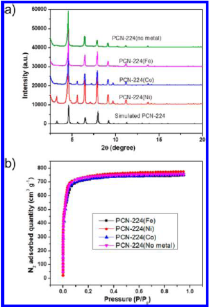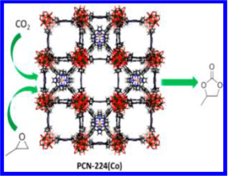 The authors from Department of Chemistry, Texas A&M University, United States developed PCN-224 series porphyrin Zr metal-organic frameworks (MOFs) with characteristics of ultrahigh chemical stability (stable in pH=0-11 aqueous solution), high BET surface area (2600 m²/g), and 3-D nanochannels, achieving high catalytic activity and recyclability in the application of CO₂/propylene oxide coupling reaction field.