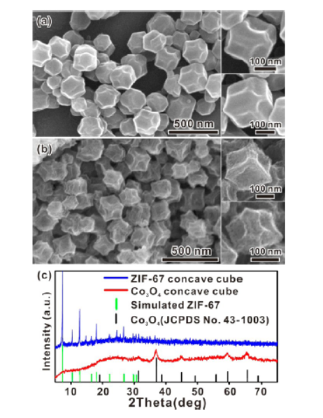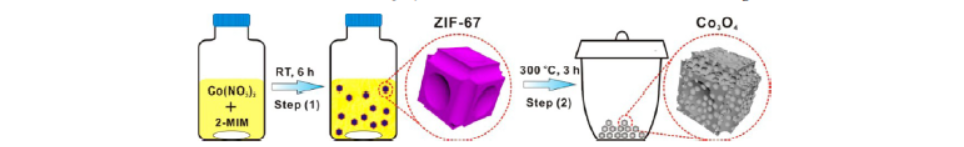 2. The authors in this study proposed an innovative MOF-templated synthesis method (using Co-MOF, ZIF-67 as template) with optimized calcination temperature (300 °C), obtaining porous Co₃O₄ concave nanocubes with high specific surface area and stable morphology.