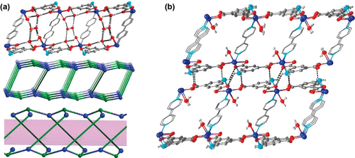 1. Synthesis: Hydrothermal reaction of Co(NO3)2·6H2O, 5-aminoisophthalic acid, 4,4′-bipyridine and NaOH at 130 °C for 72 h yields millimeter-sized single crystals of 1.