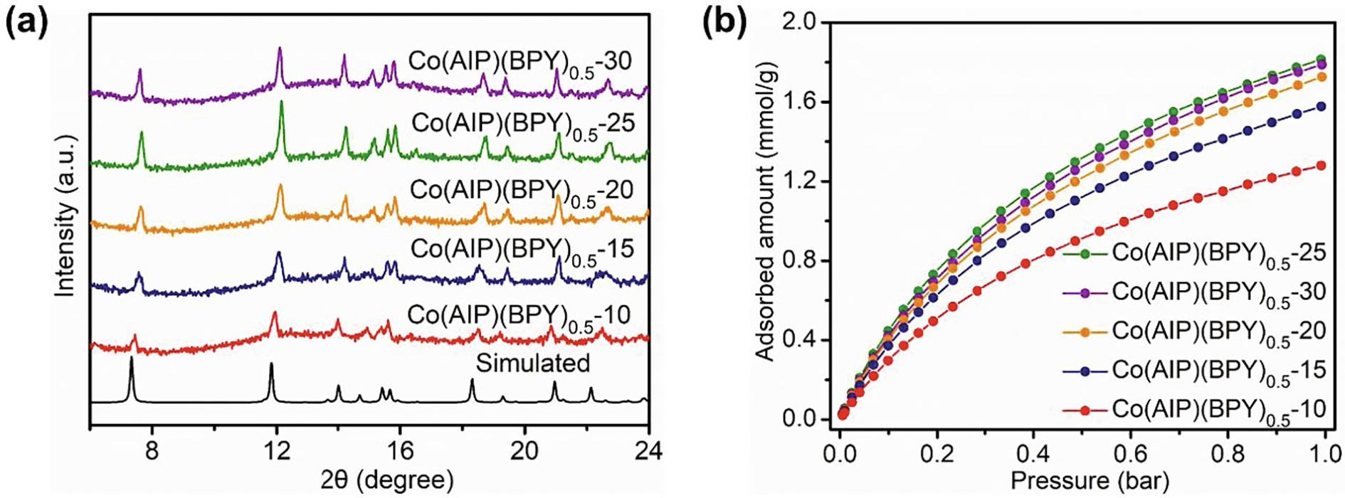 The authors from multiple institutions (including Nanjing Tech University, Guangdong University of Technology, and others) developed a robust cobalt-based metal–organic framework (Co(AIP)(BPY)₀.₅) via mechanochemical synthesis. The material demonstrated high methane (CH₄) uptake (1.03 mmol/g) and CH₄/N₂ selectivity (7.3), showing promising performance in gas separation applications.