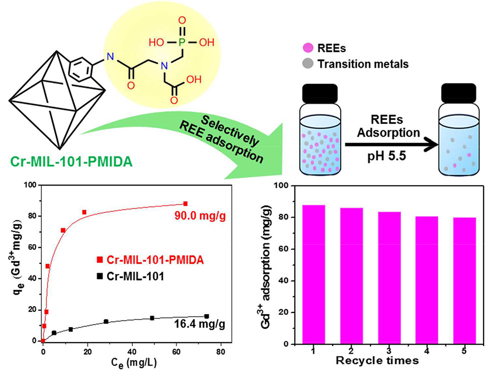The authors from Department of Chemistry and Chemical Engineering, Inha University (Republic of Korea) developed functionalized Cr-MIL-101 MOFs with high stability and selectivity, achieving excellent rare earth elements (REEs) adsorption performance in aqueous solution separation.