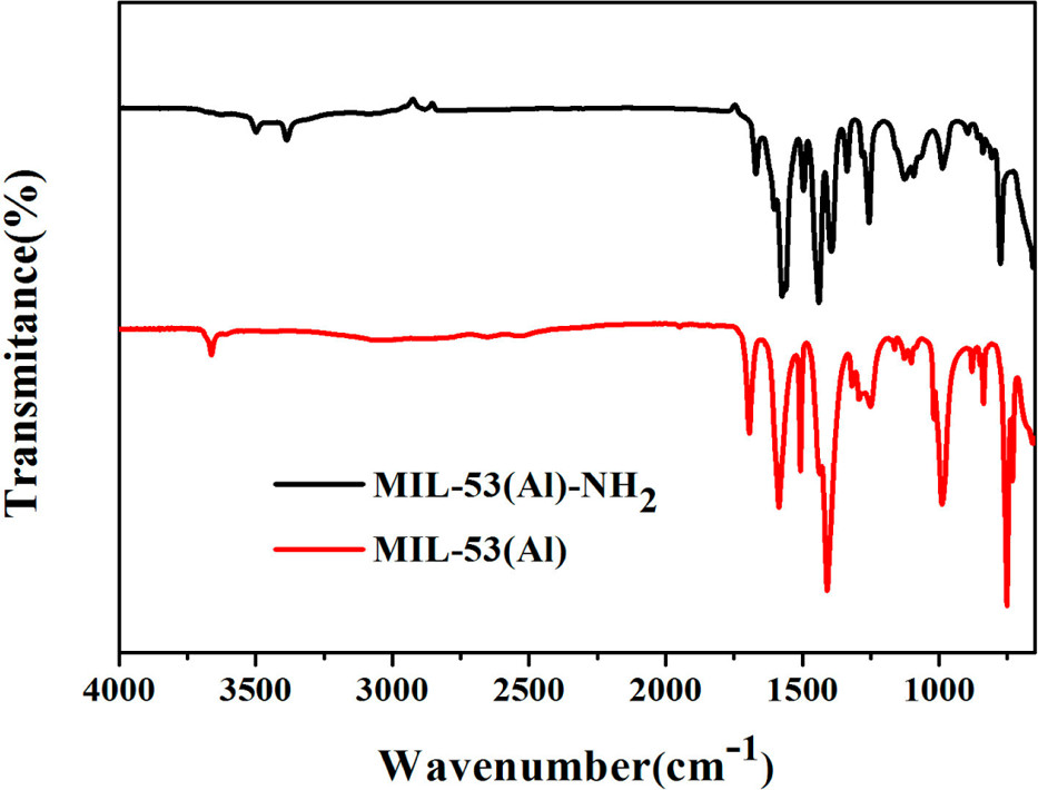 1. Synthesis: MIL-53(Al) and MIL-53(Al)-NH₂ were synthesized by hydrothermal method using aluminum nitrate and terephthalic acid/2-aminoterephthalic acid as raw materials.