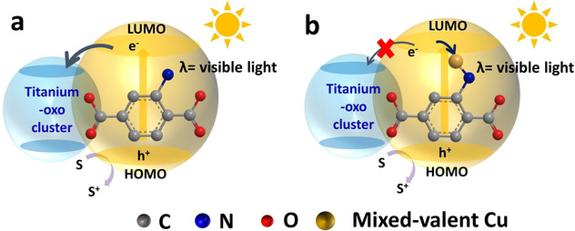2. The authors now propose a one-step post-coordination strategy that docks earth-abundant Cu ions onto NH₂-linkers, creating reversible Cuᴵᴵ/Cuᴵ centers for ultrafast electron storage and proton reduction.