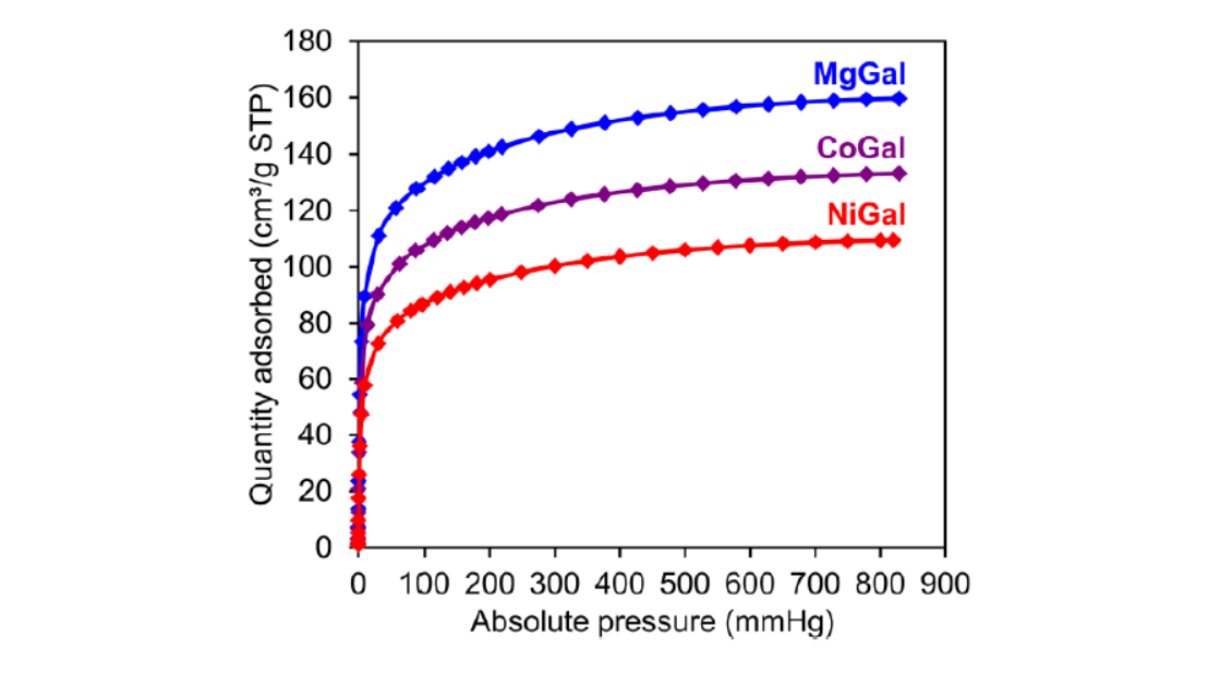 The authors from UCLouvain & DEMOKRITOS developed a sustainable ultramicroporous Mg-gallate (MgGal) MOF with 1.4 wt % H₂ uptake at 77 K/1 atm, achieving fast, reversible hydrogen storage without open metal sites.