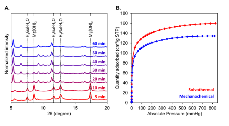 Green, rapid mechanosynthesis of MgGal delivers a low-cost, metal-site-free H₂ store that rivals best-performing ultramicroporous MOFs, guiding sustainable porous materials for cryogenic hydrogen tanks.