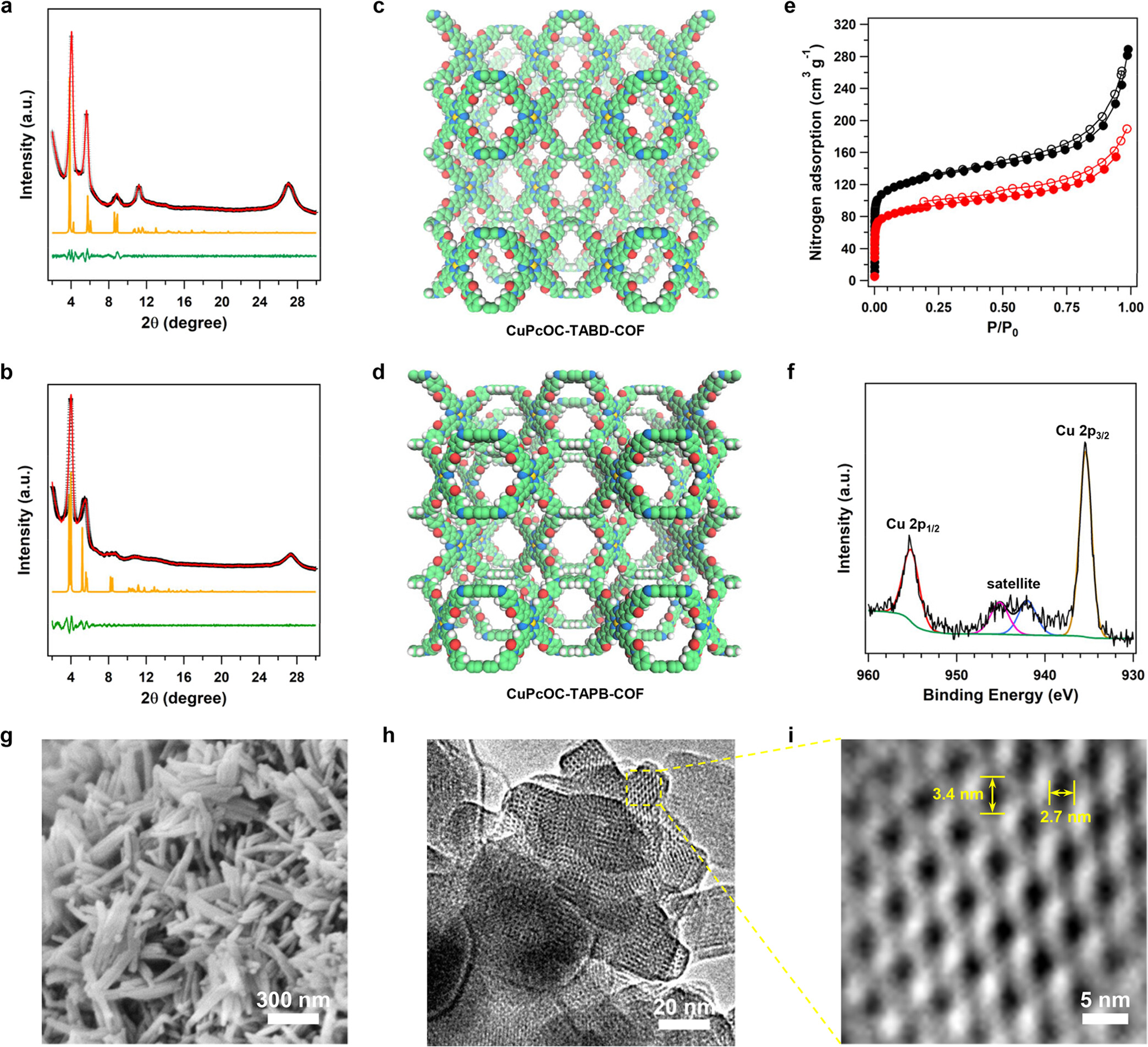 1.Synthesis: The authors used solvent thermal condensation, reacting CuPcOC with TABD/TAPB in NMP/mesitylene mixed solvent at 180°C for 5 days, yielding 85% and 88% respectively.